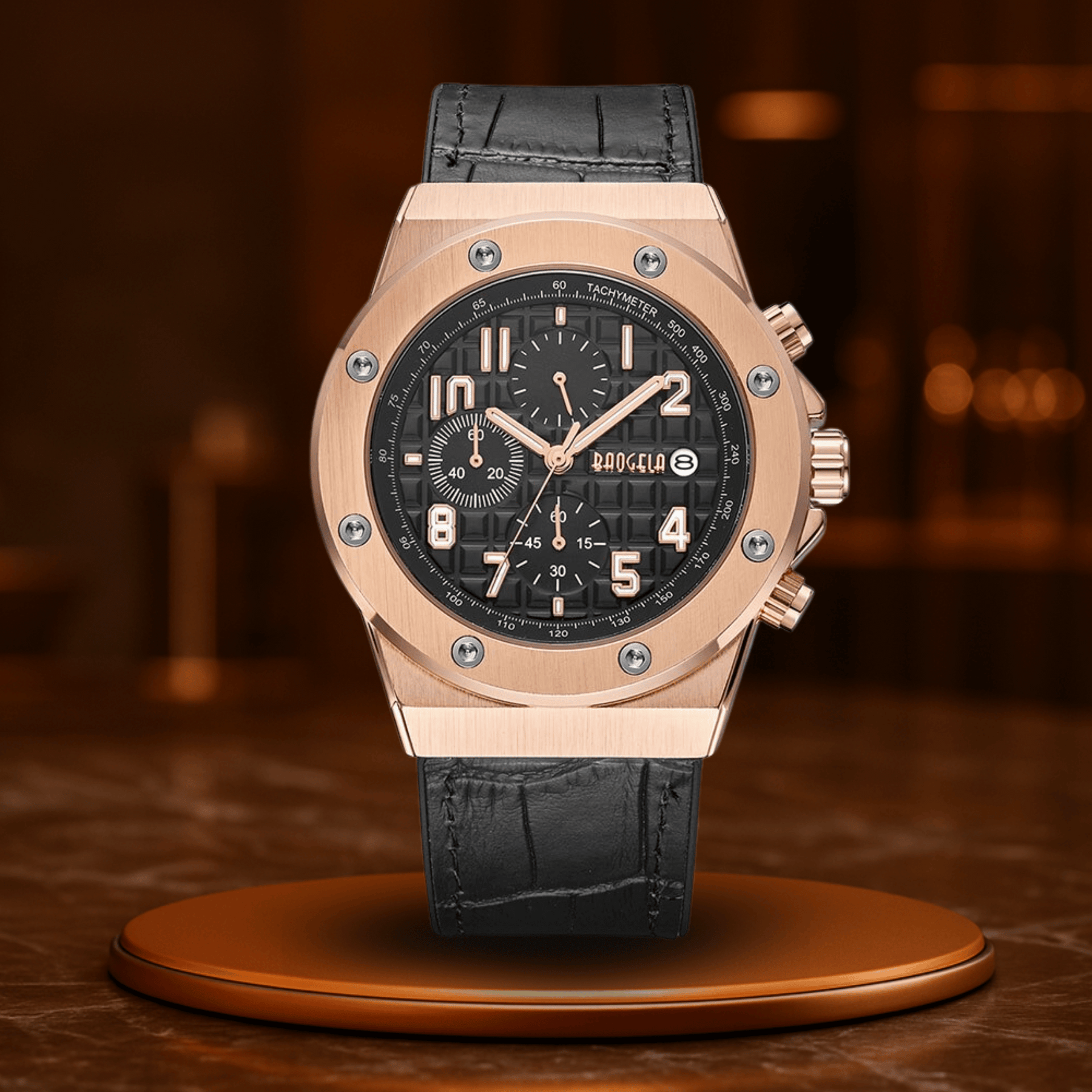 • Kronograf & kvartsurværk: Præcision med sportlig intelligens