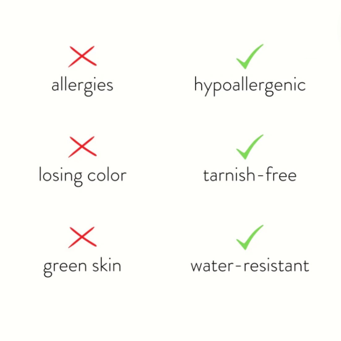 Dimensioner: 3 cm x 1,5 cm. Smykkerne er hypoallergeniske, fri for bly og nikkel, hvilket gør dem ideelle for alle.