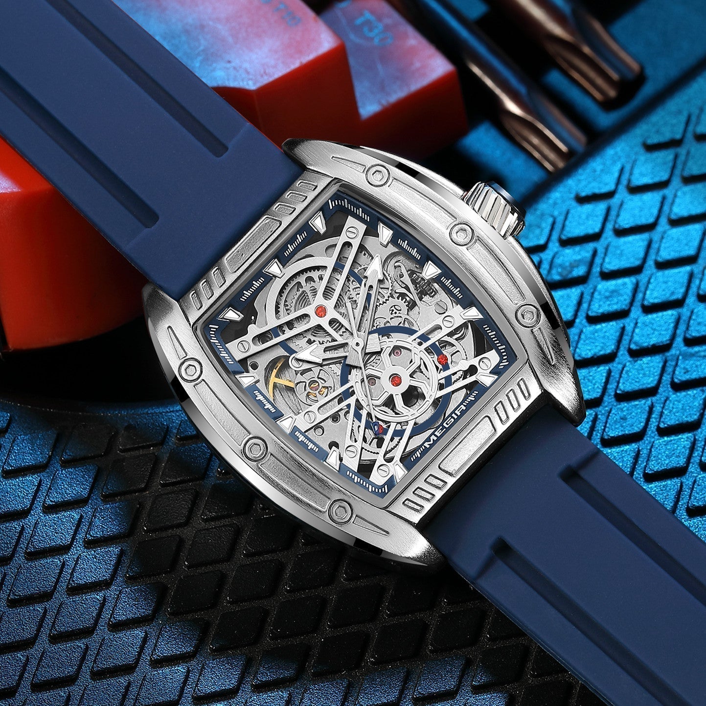 Med sit slidstærke silikonearmbånd, det præcise automatisk urværk og det markante 44-mm hus i zinklegering er det lavet til mænd, der ikke bærer undskyldninger – men krav.