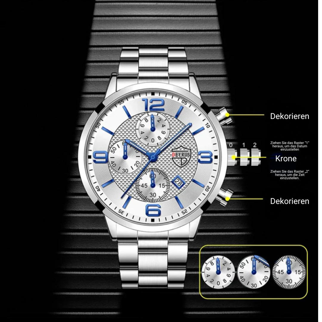 Lysende visere og markeringer sikrer, at du har overblikket i enhver situation – fra præsentationen tidligt om morgenen til gallafesten om aftenen. Den indbyggede kalenderfunktion hjælper dig med at bevare kontrollen mellem møder og øjeblikke.