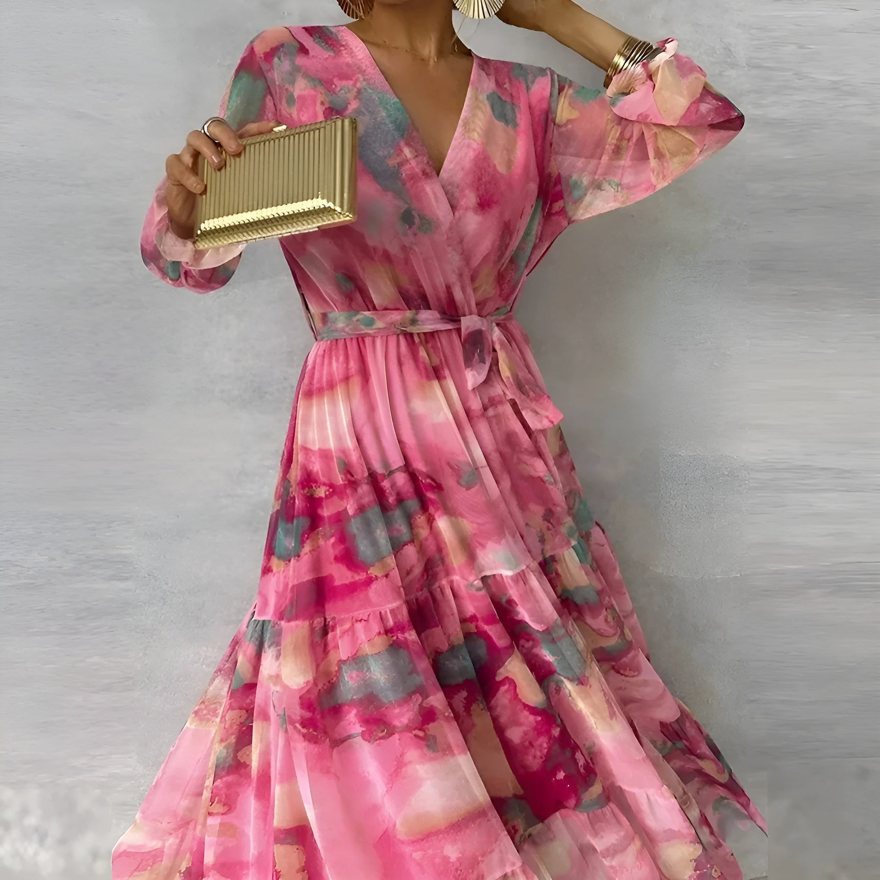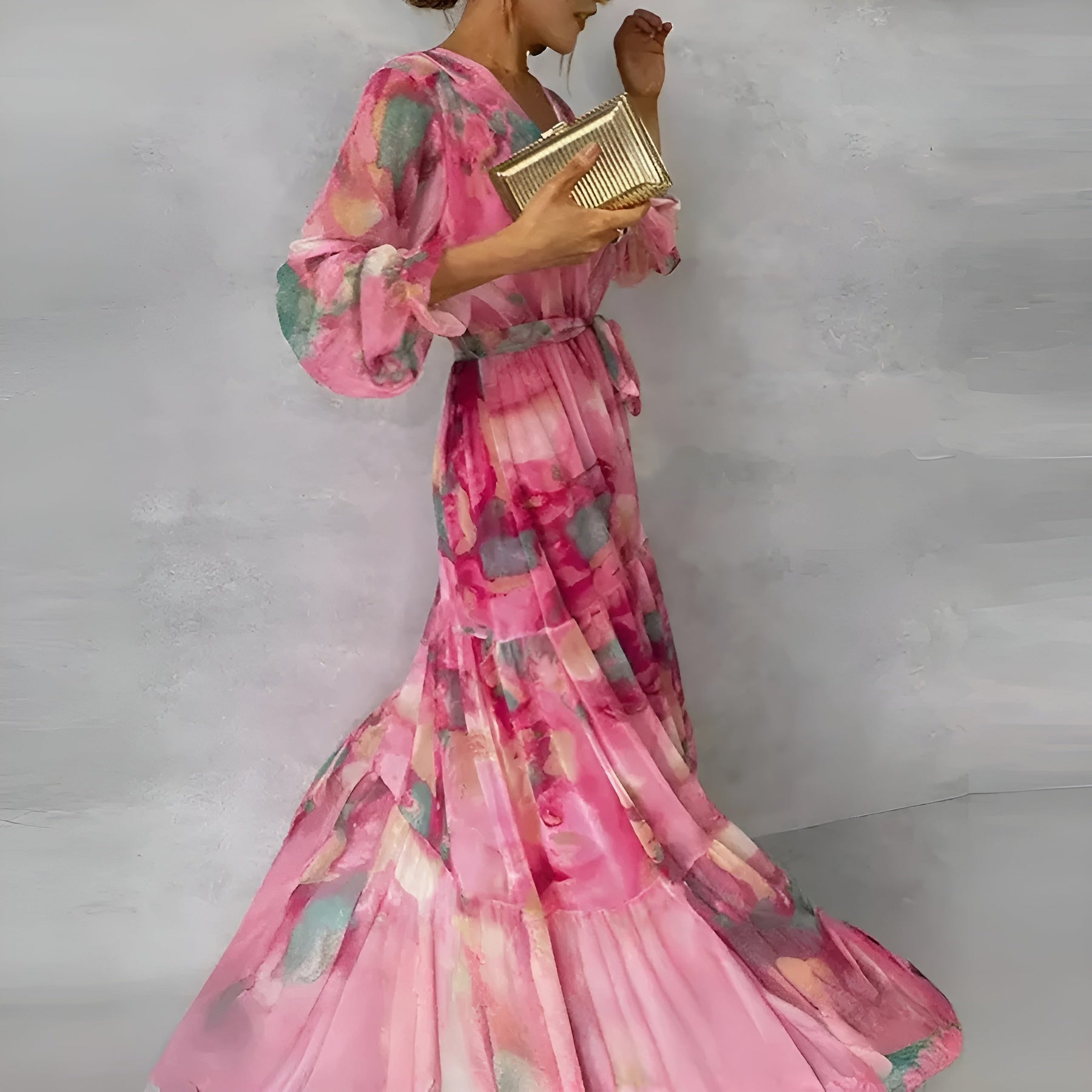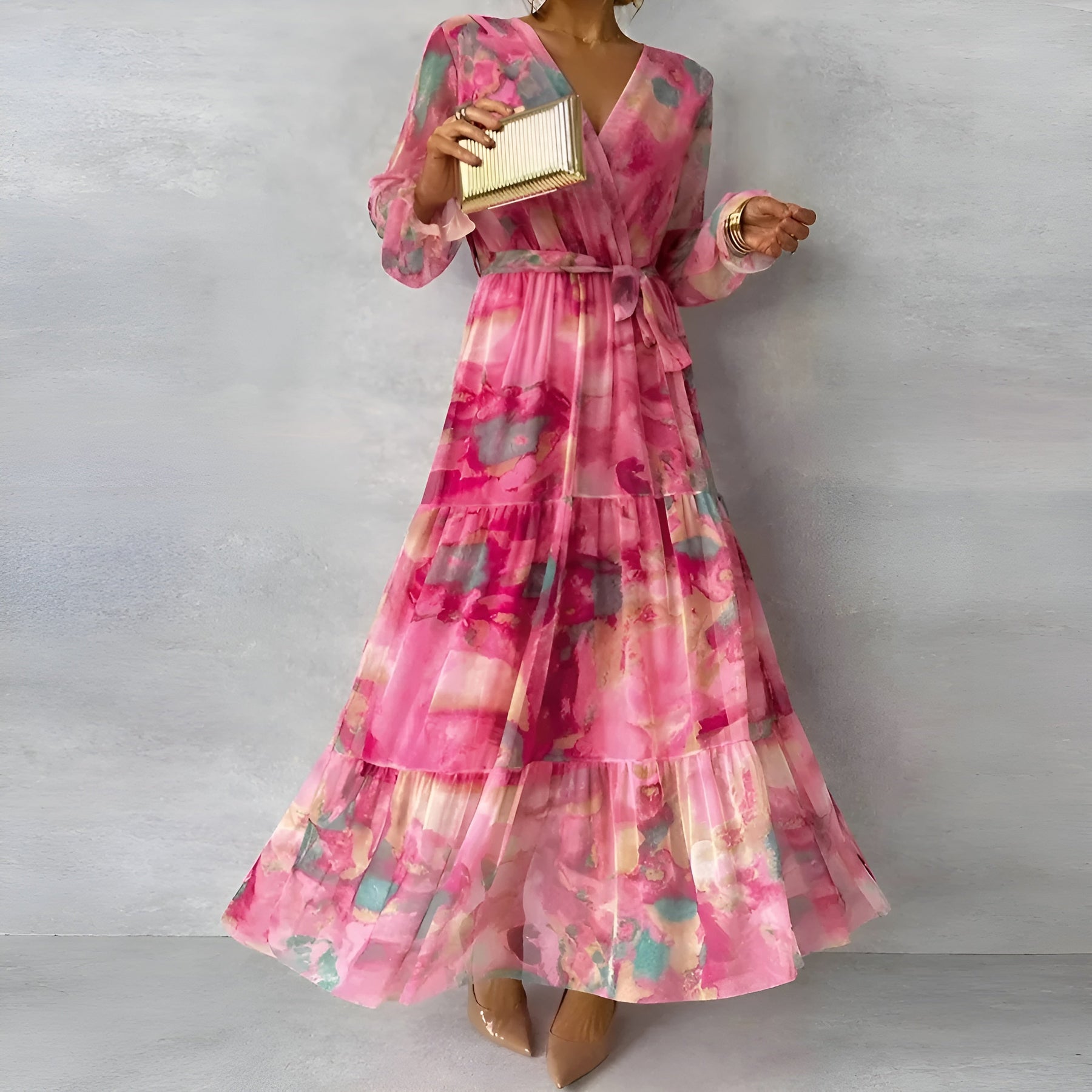 Elvira™ maxikjolen er designet til kvinder, der ønsker at kombinere komfort og elegance. Fremstillet af let og åndbart materiale, tilbyder denne kjole en behagelig pasform, der ikke strammer. Det farverige design i lyserøde og grønne nuancer giver et frisk og sommerligt udtryk.