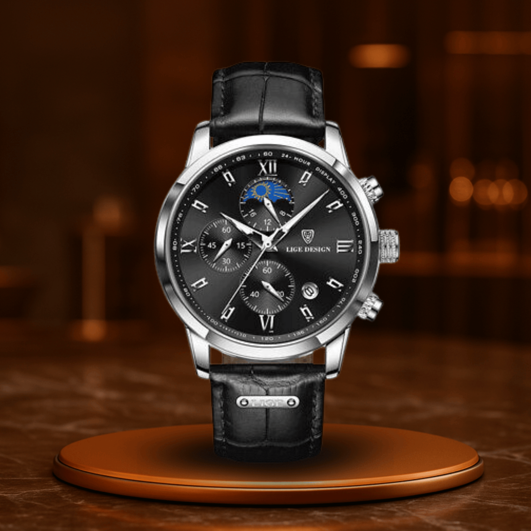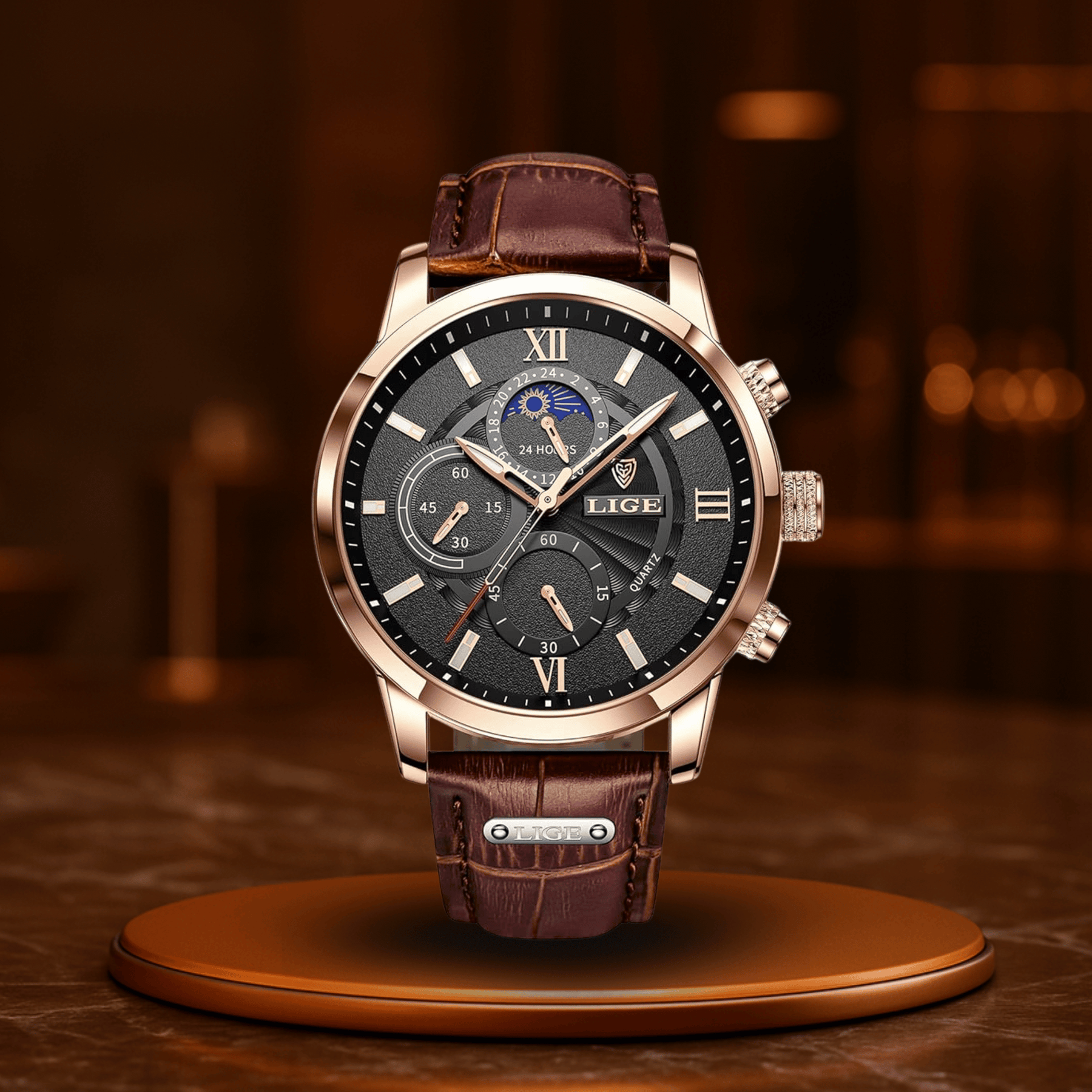 La Phase – Édition Terre fra Maison Solstice er det perfekte udtryk for underspillet elegance med dybde. Med sin raffinerede månefasevisning, den klassiske chronograffunktion og det jordnære læderarmbånd i en smuk brun kombinerer den natur, teknik og tidsbevidsthed til et stilobjekt for den moderne gentleman.