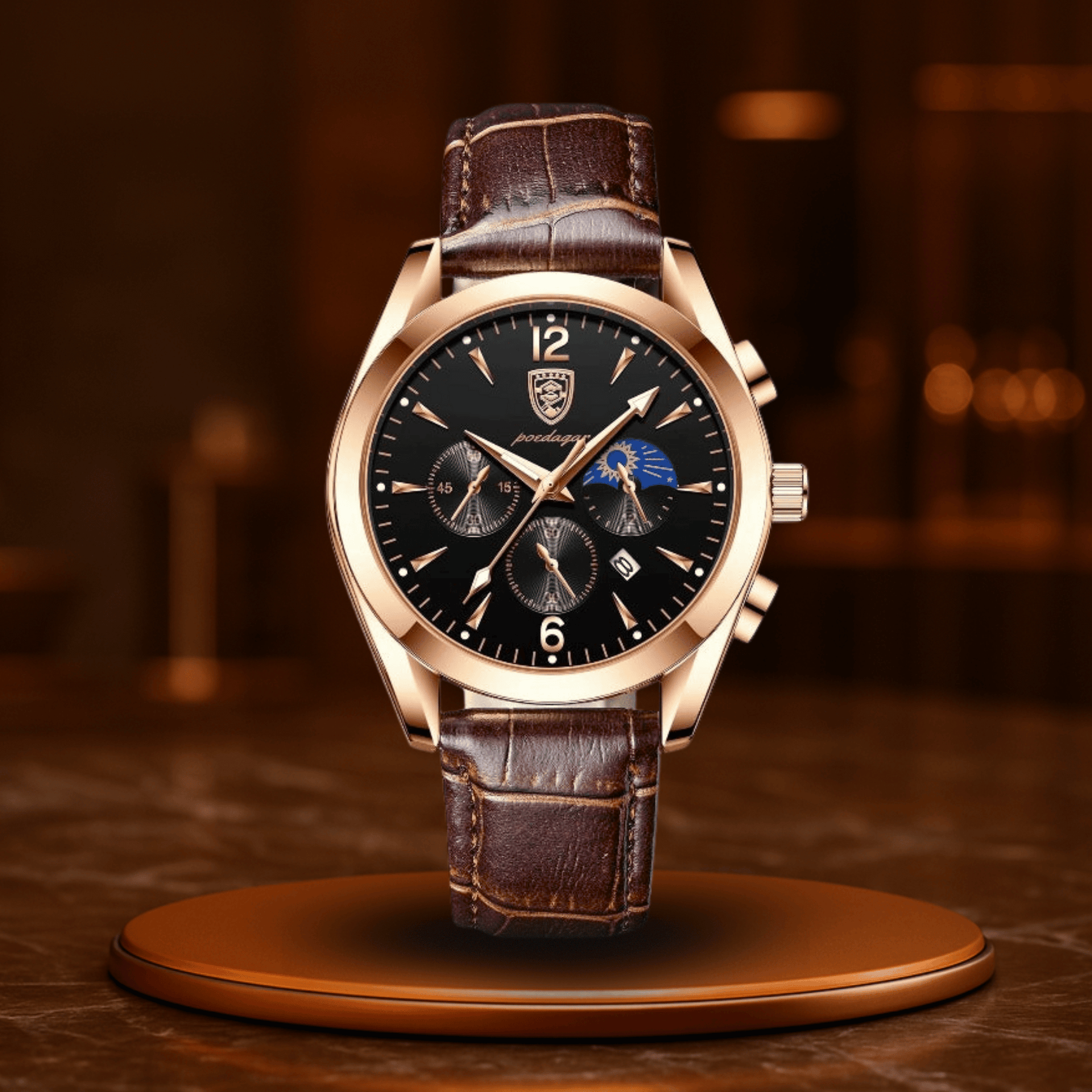 Den lysende urskive sikrer synlighed døgnet rundt – hvad enten det er ved aftenudflugter, på rejser eller i fortrolige samtaler i dæmpet lys. Spændeanordningen fremhæver den klassiske karakter – en subtil henvisning til gode manerer i en verden med tempo.