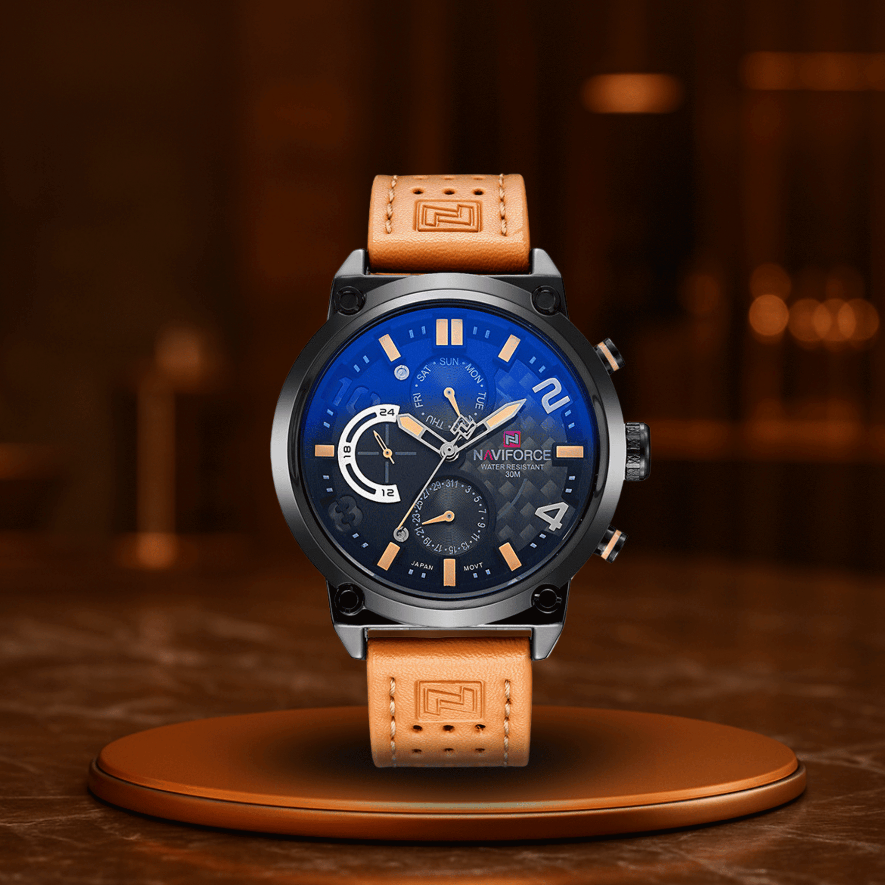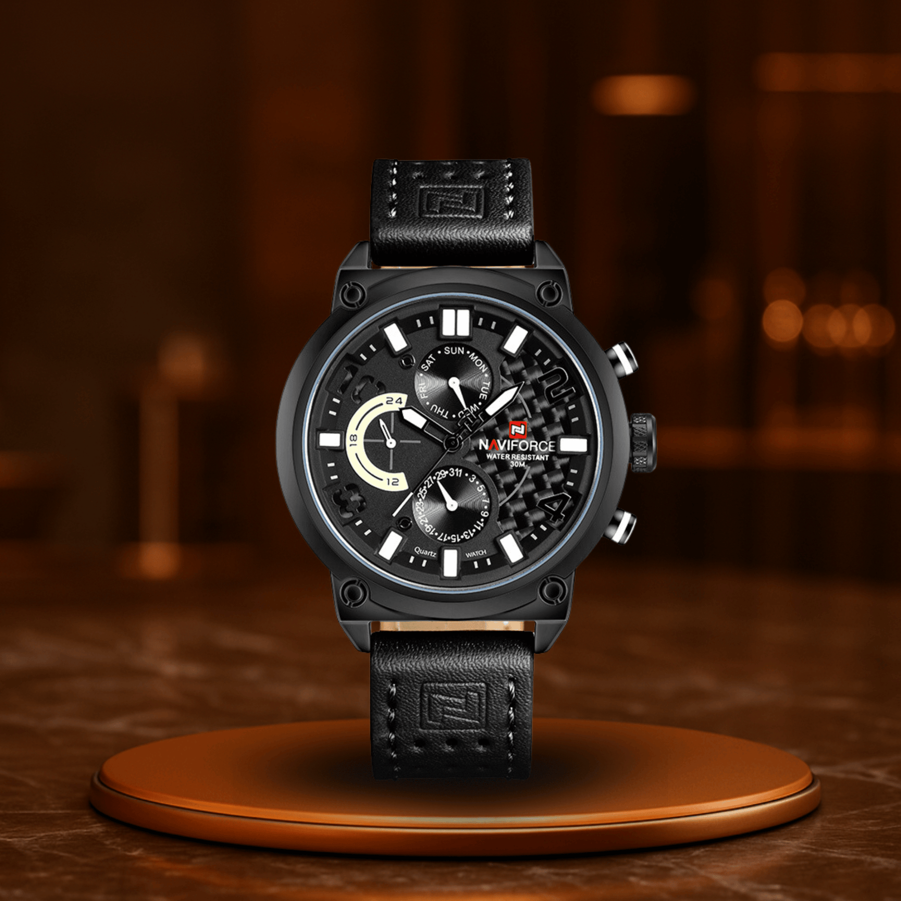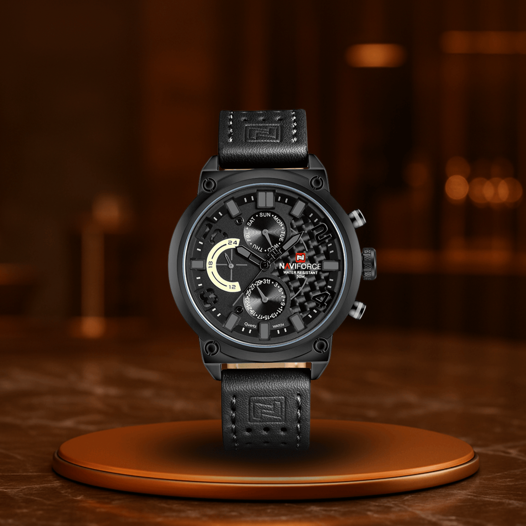 PrecisionX er lavet til mænd, der ikke kun spørger om tiden, men også efter en partner, der afspejler deres krav. Med sit slanke militær-look, et sand mesterværk af læder og præcist kvartsurværk er dette ur mere end et tilbehør – det er en uundgåelig følgesvend til enhver lejlighed.