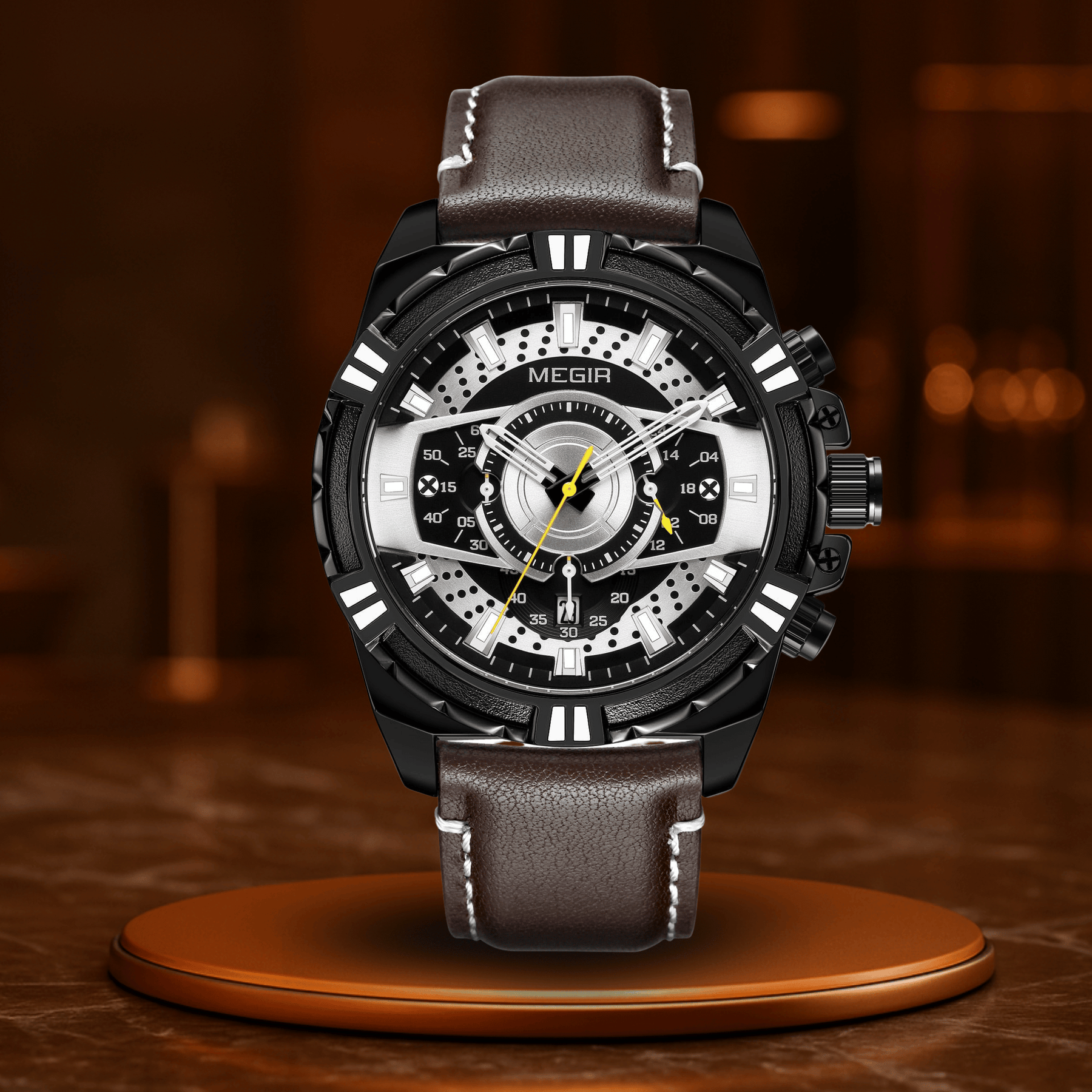 TitanForce 47 er ikke bare et ur – det er essensen af præcision, luksus og funktion. Fra det robuste læderarmbånd til de militært inspirerede chronograph-funktioner: Det er lavet til mænd, der forener svung og substans.
