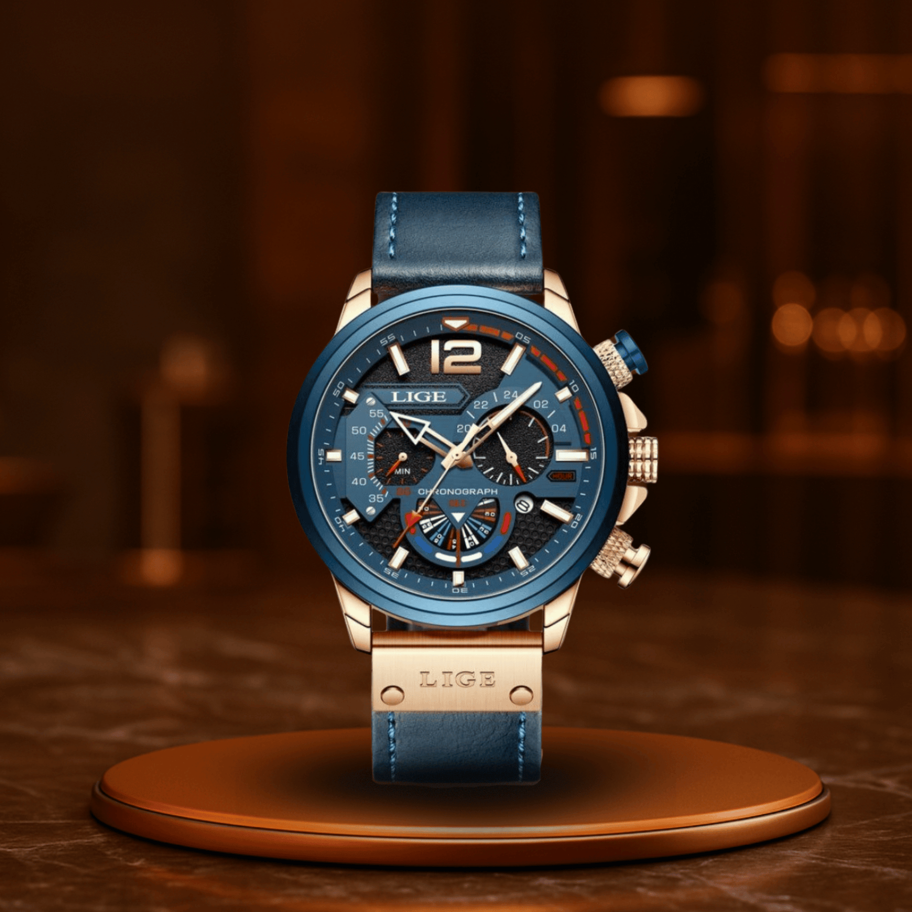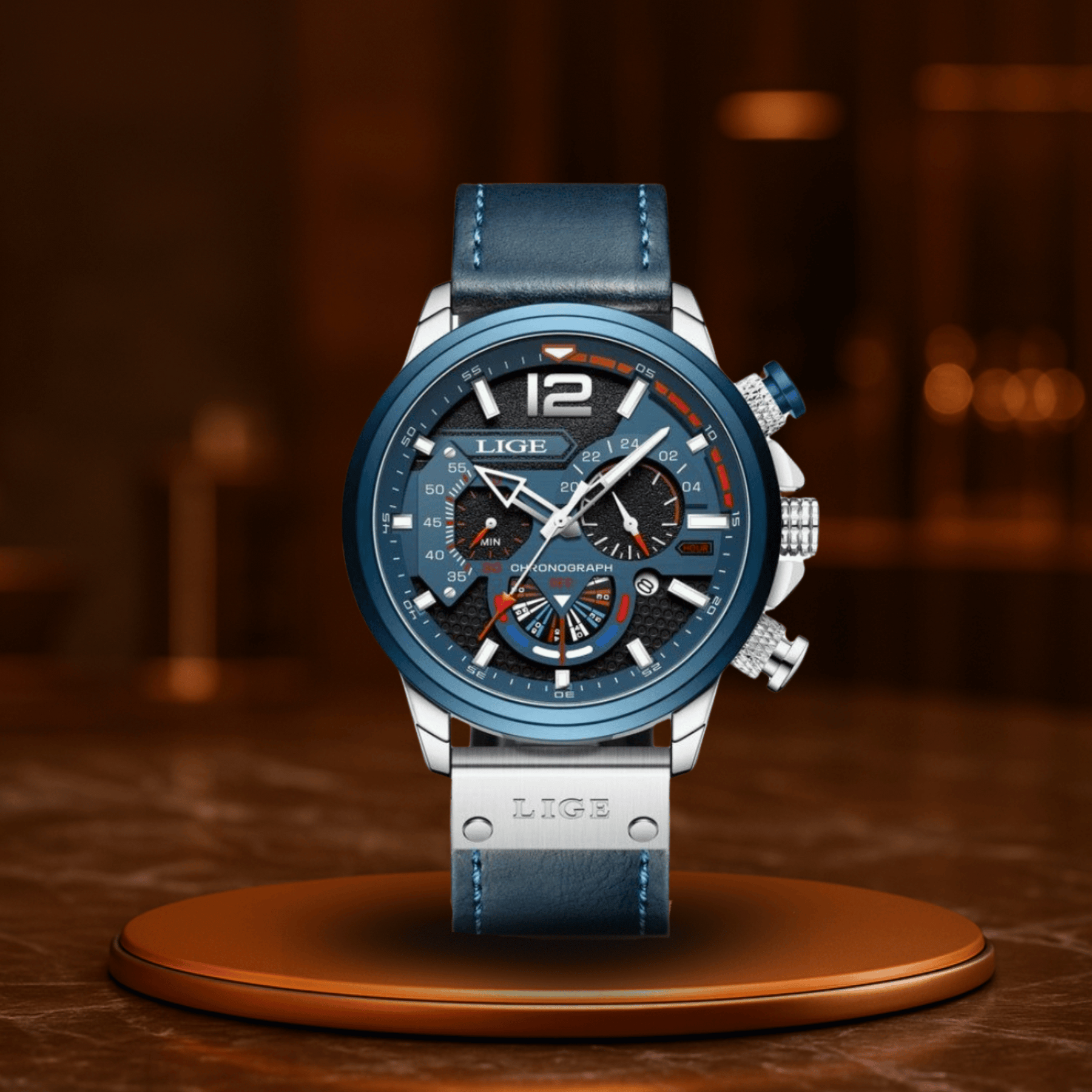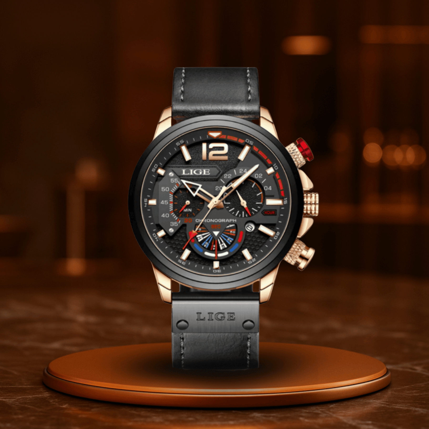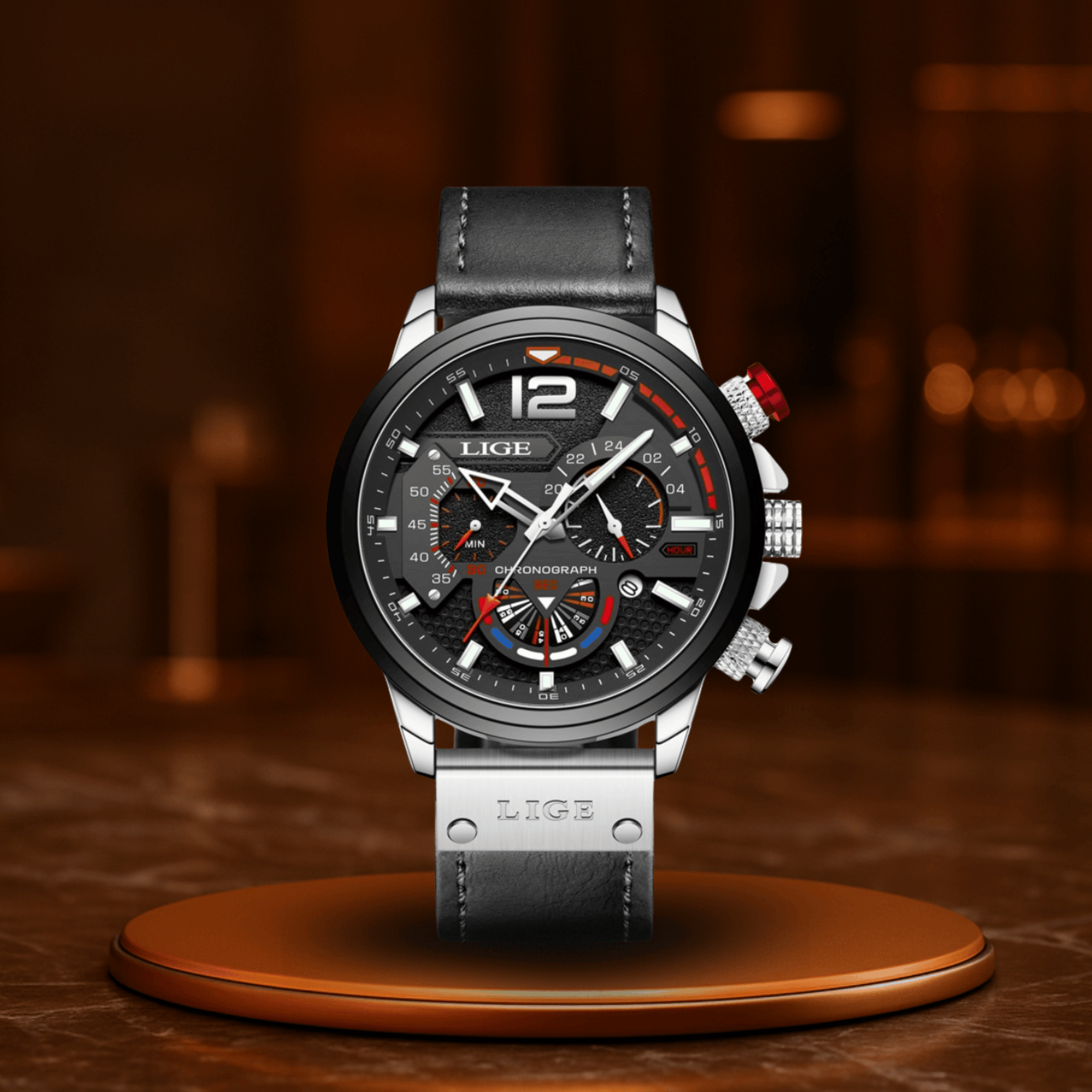 Vanguard Pro er det perfekte ur til manden, der ikke kender grænser – og ikke vil acceptere nogen komforttab i et hårdt eventyr. Med et præcist kvartsurværk, en markant chronografvisning og en datoindikation er dette ur lige så robust som det er stilfuldt. Det højkvalitets læderarmbånd garanterer ikke kun komfort, men giver også dit håndled en elegant udstråling, mens det vandafvisende design sikrer, at dette ur forbliver pålidelig under alle omstændigheder.